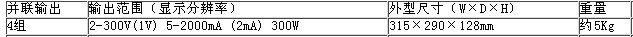输出范围(显示分辨率):2-300V(1V)5-2000mA(2mA)300W